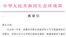 生态环境部法规与标准司向我院大气健康团队发来感谢信