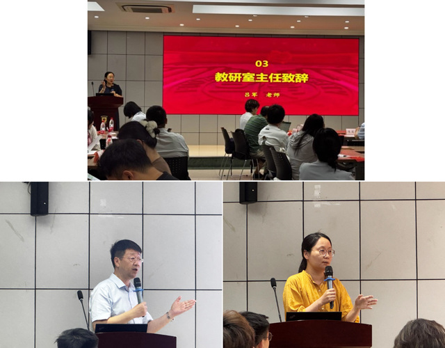 图1 吕军老师(上)、陈英耀老师(下左)与郁颖佳老师(下右)致辞