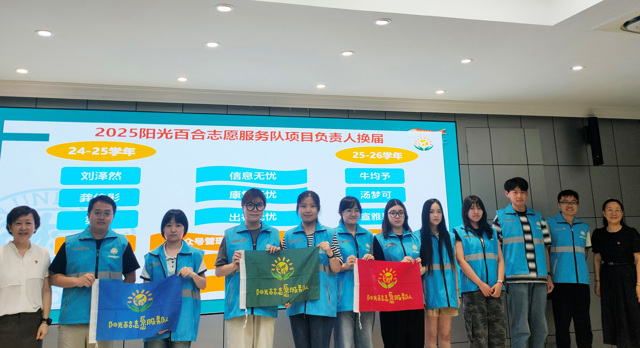 作为支部和教研室的特色品牌,陆雨晗同学介绍了阳光百合志愿服务队的基本情况。服务队的品牌项目负责人也在会上进行了年度交接,吕军老师为相关负责人颁发了志愿服务队队服。