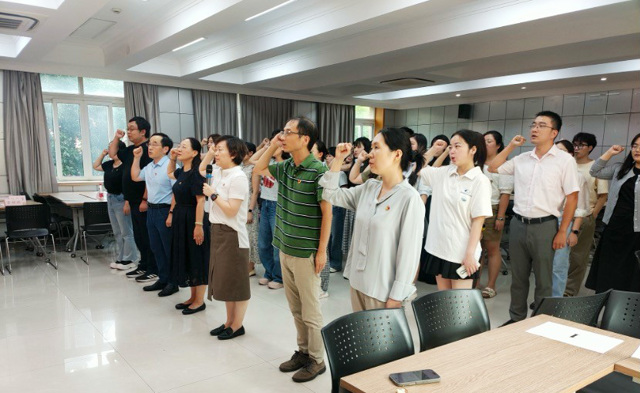 会议正式开始前,党支部成员在支部宣传委员孙梅老师的带领下重温了入党誓词。仪式后,支部书记吕军老师上微党课。她向组织关系新转入支部的研究生党员简要介绍了基本情况,并就如何更好履行党员义务,努力在思想、学习、科研和生活中发挥先锋模范作用提出了要求和建议。