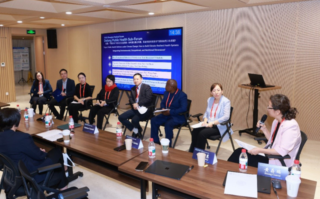 论坛专题讨论聚焦“气候变化下的公共卫生防御”这一核心议题,由复旦大学公共卫生学院赵卓慧教授主持,邀请清迈大学公共卫生学院副院长Waraporn Boonchieng、穆欣比利健康与联合科学大学公共卫生与社会科学学院院长Deodatus CV Kakoko、清华大学万科公共卫生与健康学院副院长黄存瑞、吉林大学公共卫生学院副院长王娟、哈尔滨医科学院公共卫生学院副院长王帆、天津医科大学公共卫生学院副院长刘欢、南华大学公共卫生学院副院长肖福兵,围绕“如何构建整合环境、职业与营养因素的气候适应性卫生系统”展开深入交流,从公众认知、技术创新、重点人群保护、社区实践等多个维度分享见解,形成一系列关键共识。