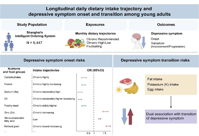 文章引用: Chen, H., Zeng, Y., Qian, J. et al. Association between daily dietary intake trajectory and depressive symptom onset and transition among young adults: a longitudinal study. BMC Med 23, 553 (2025). https://doi.org/10.1186/s12916-025-04401-7.